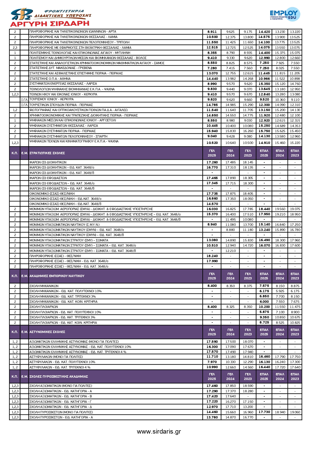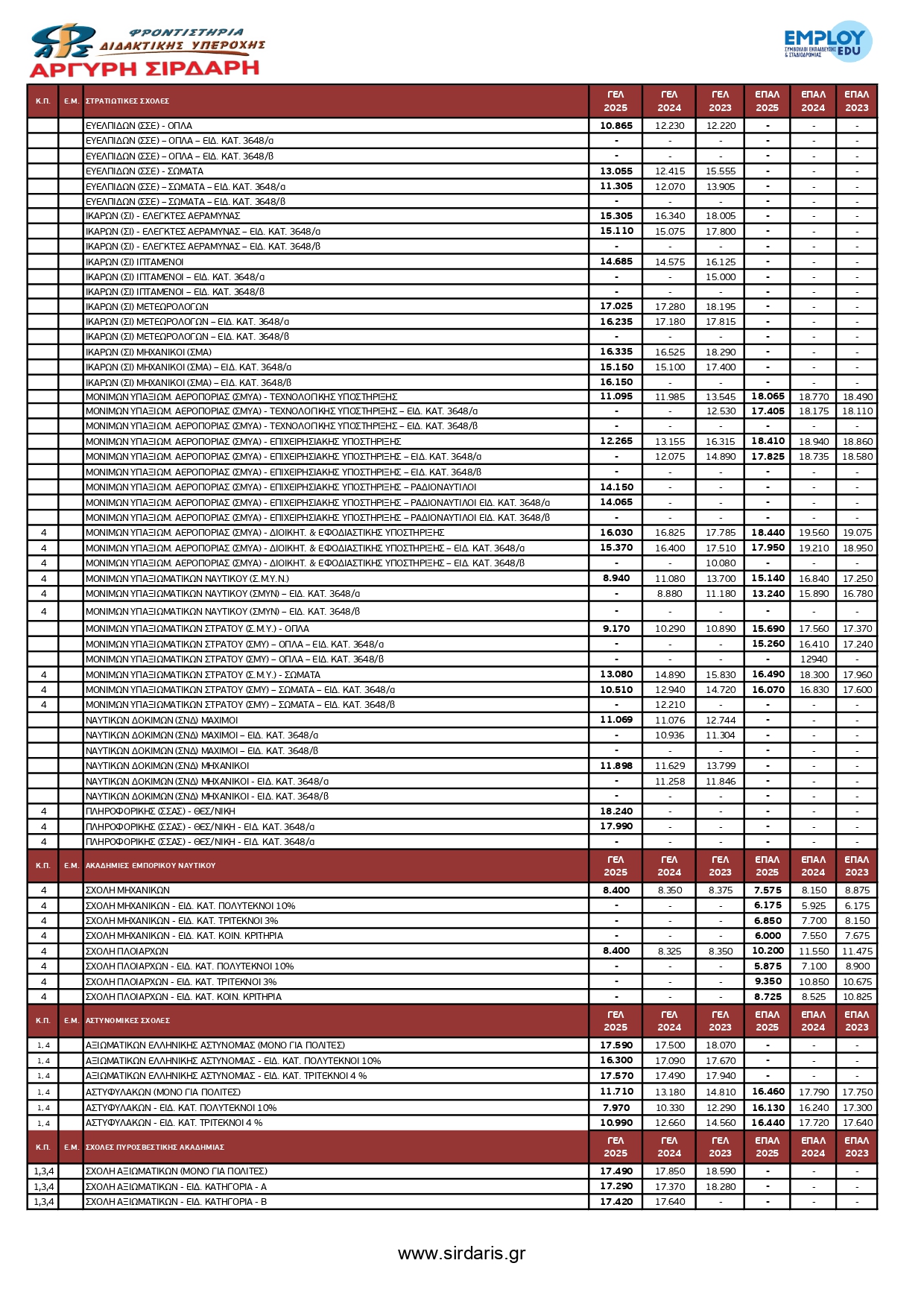 Συγκριτικό Βάσεων 2022 - 2023 - 2025 σε μορφή pdf